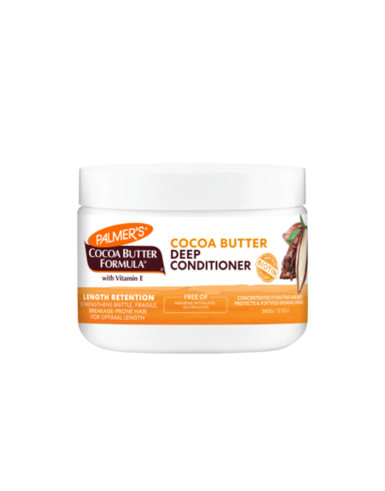 free deep conditioner, deeply penetrates to nourish each hair fiber Strengthens to help prevent future damage Moisturizes, detangles and softens Improves shine and elasticity Created for all curl patterns and textures Silicone free No parabens, phthalates, mineral oil, gluten or dyes For healthier looking hair, use the entire Palmer's Cocoa Butter Formula Length Retention system Committed to responsible sourcing |